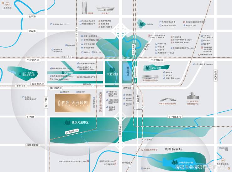 2、非稀缺景观不占:区域拥有天府公园、兴隆湖湿地公园、鹿溪河生态区三大千亩级城市公园——项目与鹿溪河生态区(规划中)仅一街之隔。